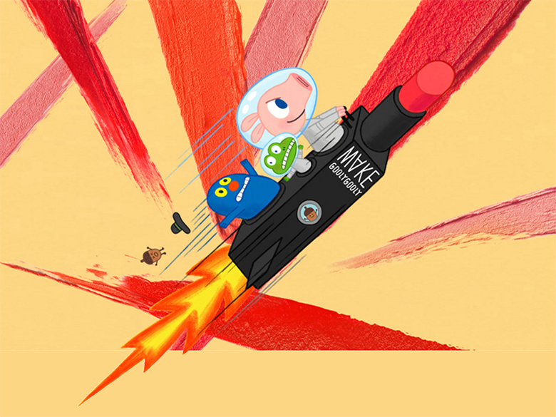 這次要介紹的是品牌WAKEMAKE和韓國設計師GOOLYGOOLY的聯名產品。GOOLYGOOLY的畫風有點像是小時後故事本裡面的可愛角色呢!這次聯名的20之隻口紅,畫上的是可愛的五種娃娃,可以看到裡面的角色就像是那個小時候愛模仿媽媽化妝,拿著口紅擦的樣子是否覺得很逗趣呢?