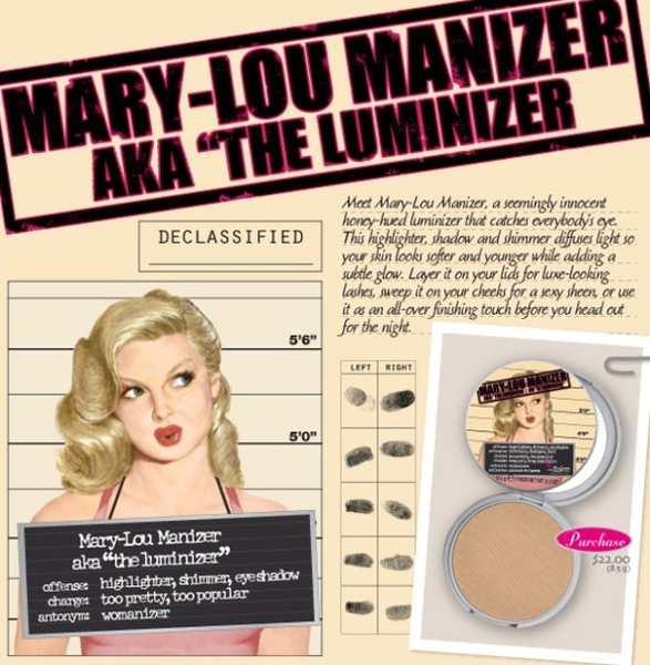 品牌介紹:獨立、性感、自主是現再女性的象徵,配搭多元化的彩妝更能突顯女士們自我形象,帶出魅力所在。源自美國的全新彩妝品牌The Balm,一系列創新的包裝,獨特的產品設計,豐富的色彩,加入性感、女性自主的原素,配合方便易用的特點,多種顏色及香氣,於美國推出,迅即成為時尚女性搶購的彩妝首選。而且除了帶有點調戲的名稱之外,還有高特色的包裝呢,讓人不禁會聯想到另一個美國品牌“Benefit”(笑)
