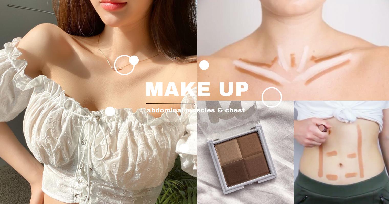 如果懶得練腹肌運動又想看起來有腹肌的話,最快的方式就是透過『修容』的方式,利用深淺陰影製造出立體的感覺,直接使用修容餅或是修容膏都可以,視覺上馬上就能看到效果啦,但實際要怎麼畫呢,請繼續往下看教學!
