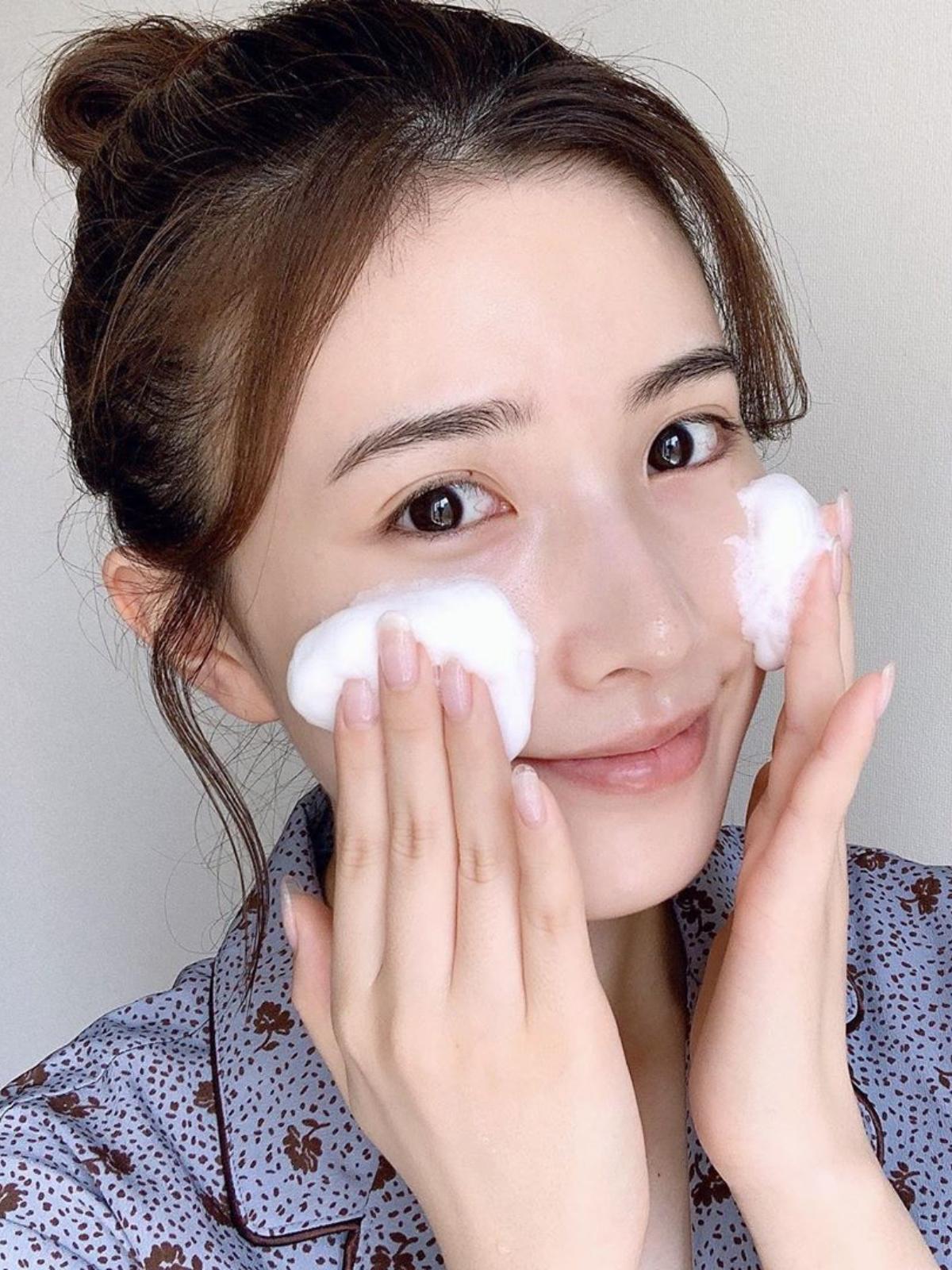 洗臉這個步驟看似簡單,但魔鬼藏在細節裡,首先要將洗面乳在手上搓好泡泡,才能抹上臉,不能直接還沒搓出泡泡就直接抹臉,這樣在臉上搓的動作會拉扯傷害到肌膚,而洗臉順序為,先洗鼻子,因為鼻子的油脂分泌較多,之後帶到額頭,下巴這三個T部位完成後,再來洗雙頰、眼周。