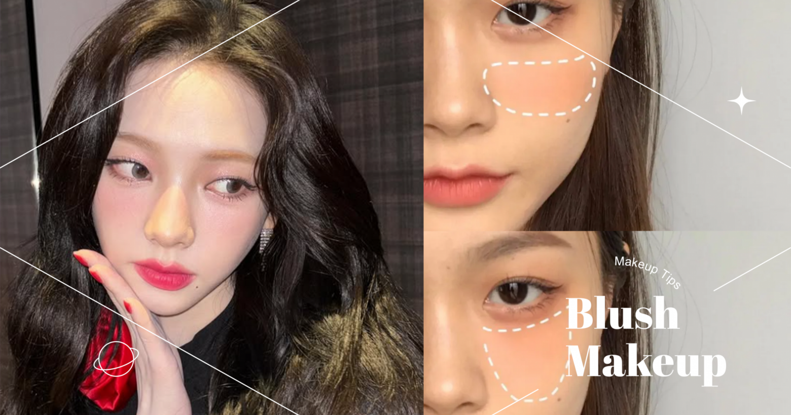 常常看到日本女孩的腮紅畫法,非常可愛減齡,同時也可以達到柔和臉部輪廓的效果!位置就是從眼下連接到眼角,會形成一個三角形,冬天搭配梅子色、血色腮紅真的會有種自然的凍紅感~