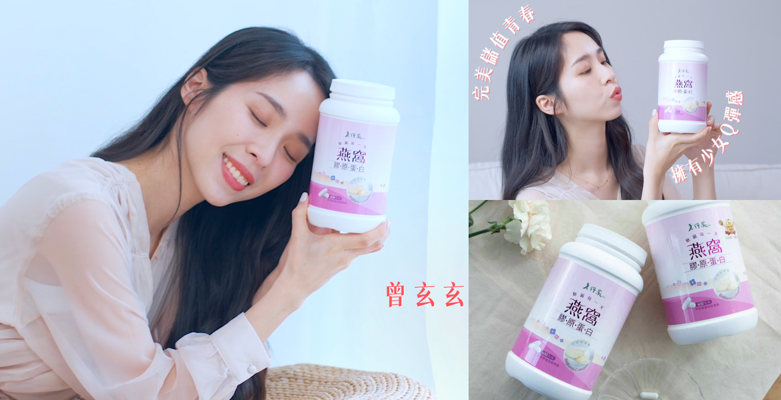 隨著曾玄玄定期補充「燕窩膠原蛋白」,讓惱人的煩惱消失~加倍青春手到擒來