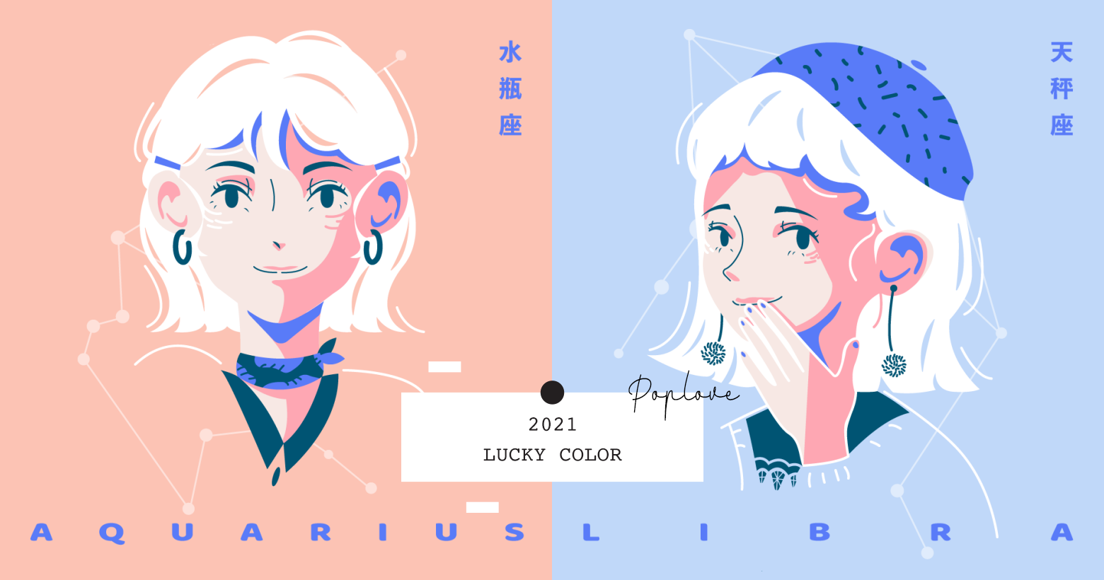 橘紅色的大膽代表著今年的天秤座有突破的機會,就和天秤本身一樣,很有活力和衝勁;淡藍色則是天秤本身散發的氣質,高雅又迷人。