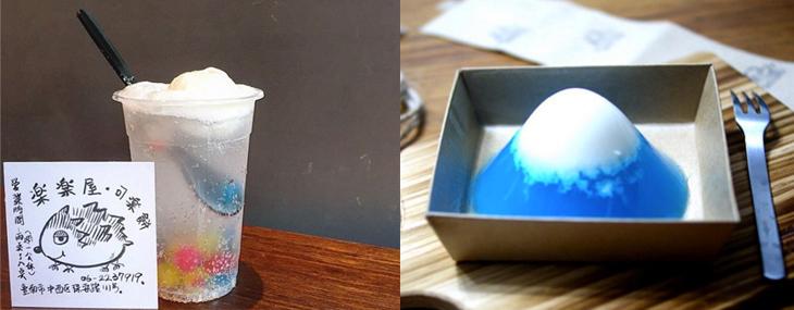 到底最到底的日本味是什麼呢?就是名為「富士山」的甜點摟!外表猶如童趣版的富士山,外表透透亮亮的Q彈感,吃起來的口感有點類似寒天果凍,還會附加煉乳讓你為富士山更添加雪白。