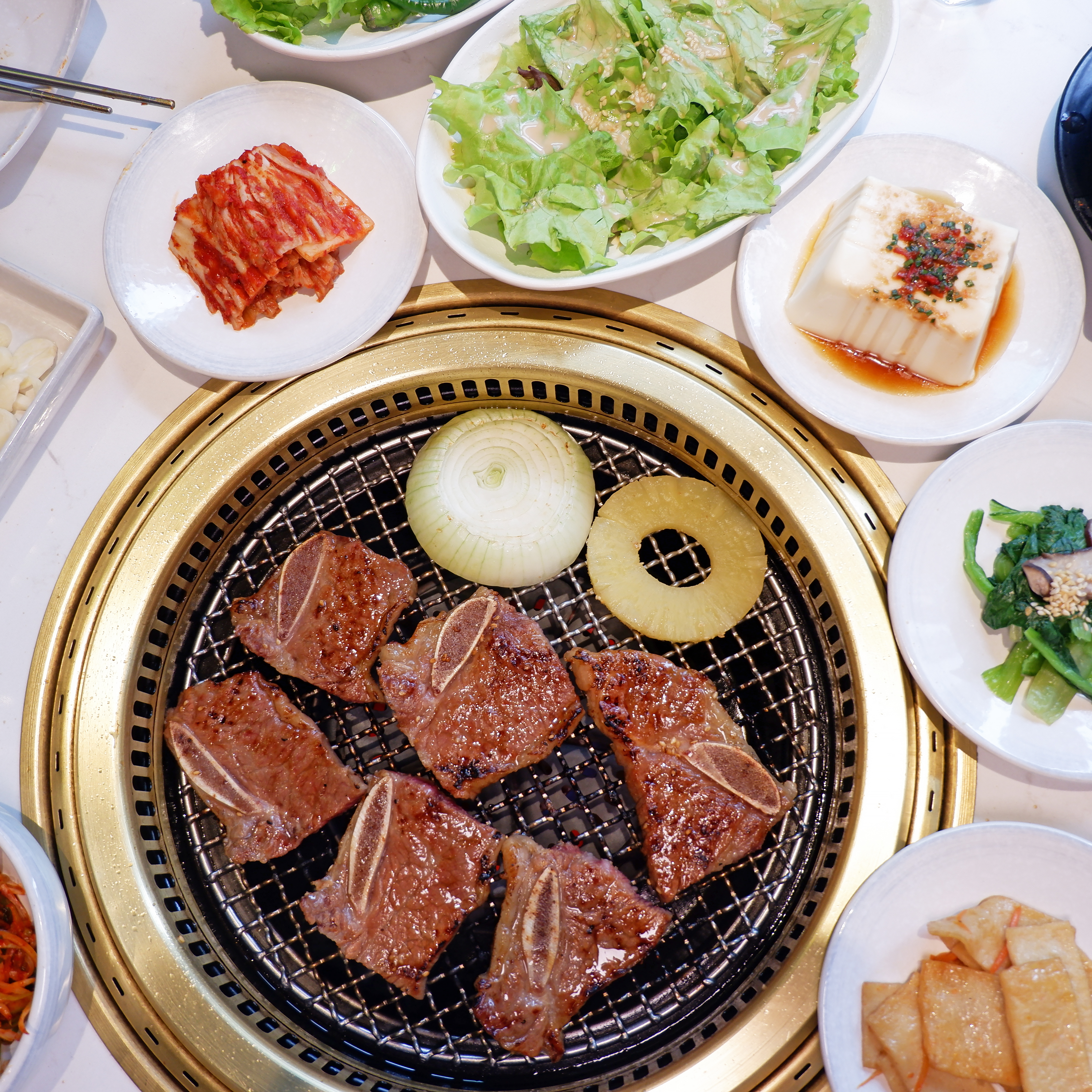 牛背肩的做法比較像銅盤烤肉,視覺畫面還不錯,但我覺得吃起來跟豬梅花一樣比較普通一些。整體來說我覺得還是不錯的,四百多的價格有專人全程幫忙烤肉,重點也吃得飽、肉質又棒,比起以往吃韓式的印象確實還不錯囉