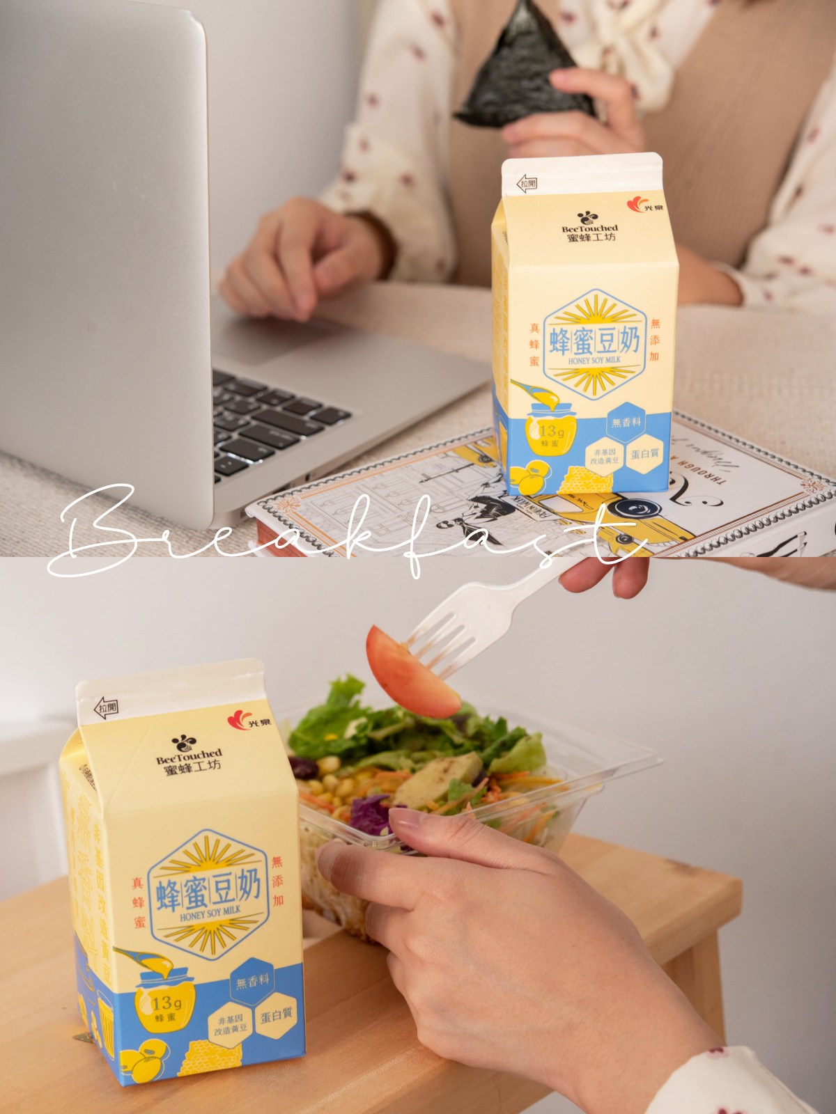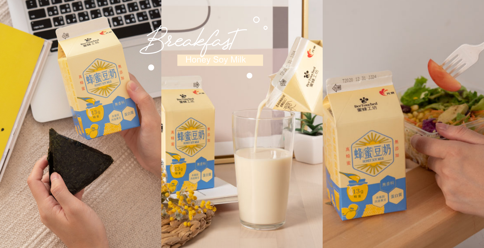 看完以上的早餐組合後,是不是發現到「豆奶」有多棒了呢?其實早餐挑選上只要記住一個公式就可以了,利用「碳水化合物+蛋白質」就能組合出活力滿點的一餐。以往在介紹早餐組合時都會推薦給大家無糖的豆漿,主要也是避免大家攝取過多醣分,會增加身體的負擔,只不過對於螞蟻人來說要喝無糖實在太困難了,所以不要怪小編總是嘗試幾天就放棄!這次在超商看到蜂蜜豆奶上架後,甜甜的蜂蜜味更加襯托出了黃豆原有的香氣,濃郁的口感更是喝完大滿足,一罐裡面可是有13g的真蜂蜜添加,如此成分單純又誠意滿分的豆奶讓大家能安心大口喝下。