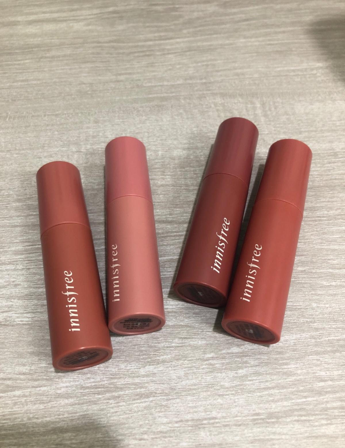 #innisfree #vividcottonink 在韓國買的 按照順序是6.7.8.10色號 質地一開始水水的 時間久了過後會變 微絲絨霧面的感覺 很美🥺 就韓妞會擦的那種感覺 整體妝容加分🥰 第二張是8號實擦