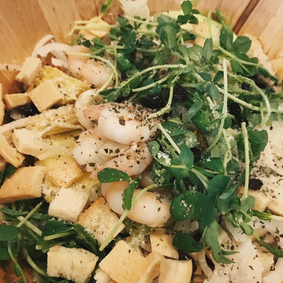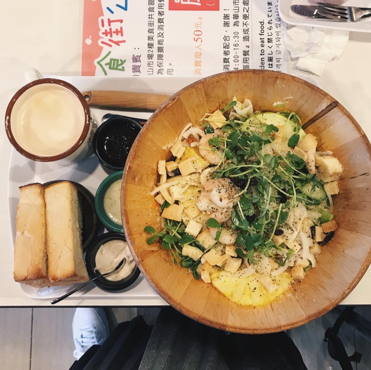 當我很想吃很多菜的時候,丘比總不會讓我失望。用木盆裝滿,各式蔬菜沙拉,鋪上Q彈蝦仁的檸檬鮮蝦木盆沙拉;還有夾上厚實軟嫩雞胸肉的雙層乳酪雞肉帕尼尼,大份量的早午餐單點不到200元超划算,加點飲料再折20元👍🏽沙拉醬不是隨便用千島沙拉醬呼嚨,撈撈木盆裡的菜色真的很驚豔,除了美生菜、苜蓿芽之外,有玉米筍、四季豆、杏鮑菇、黑橄欖、香蕉芭樂等,竟然還有秋葵跟不是罐頭來的新鮮鳳梨片~這樣2份餐點3個人就非常剛好,2個人各點一份就是打算pass下一餐🤣