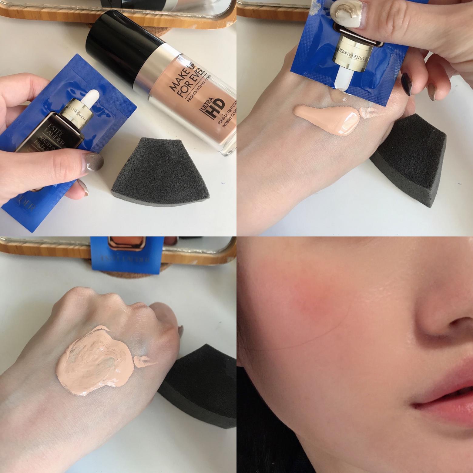 為了更可以展示到底好不好用,我沒有用雅詩蘭黛的粉底液,而是用不同的品牌~會在一起使用在上妝真的服貼很多,冬天非常有感!一定要混均勻在上妝喔~