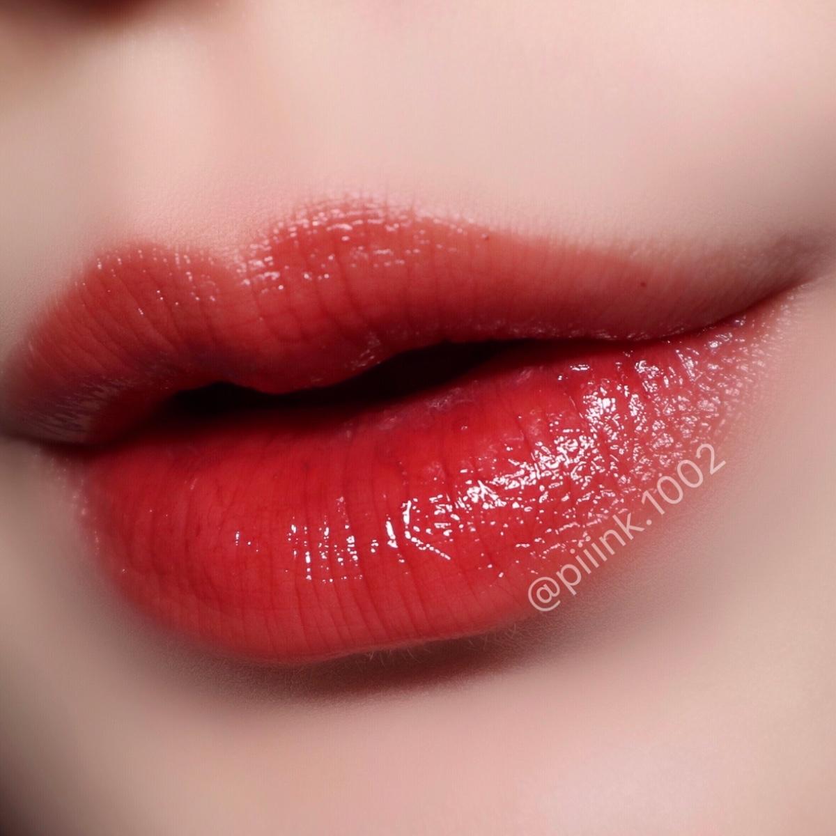 保濕滋潤的唇釉質地,但比一般的唇釉又更輕薄。剛擦因為很水需要來回幾次擦勻,但比YSL水唇膏好擦勻!擦勻成膜後顏色就不會被推開,疊擦顏色更飽和👄,而且我覺得它一直都很滋潤不會隨時間乾掉🧖🏻♀️