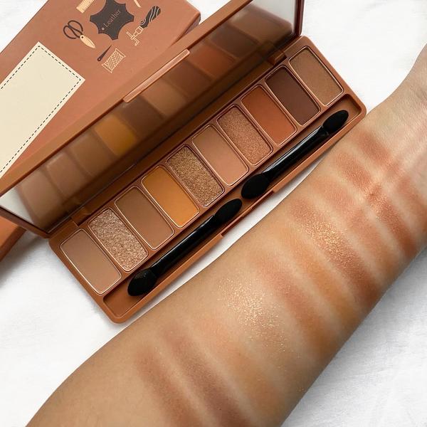 跟一般的大地色稍微有點不同,除了基本的棕色調外,加入一顆帶點抹茶綠綠的霧面色,在開架中我覺得滿特別的⠀