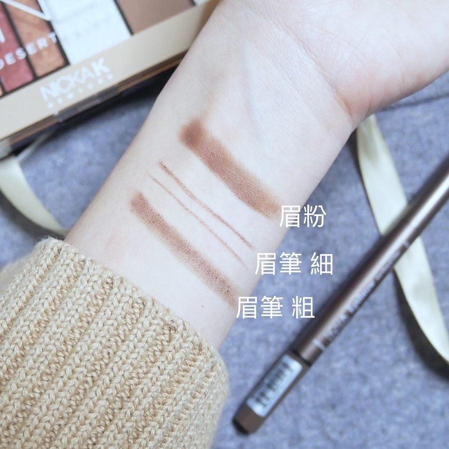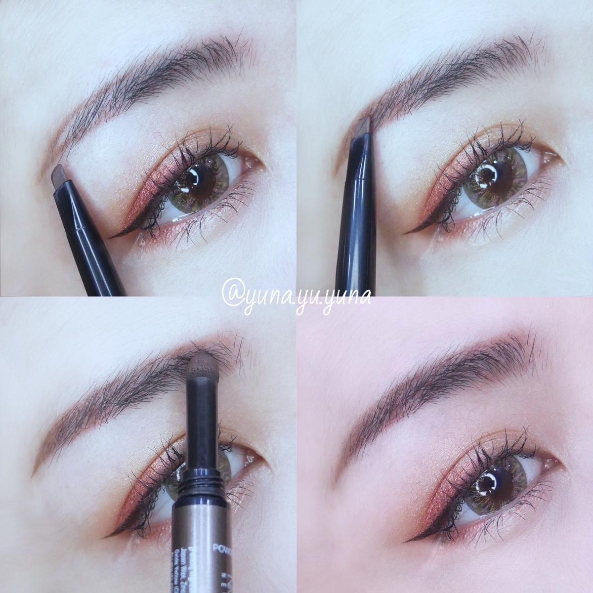 一面是眉筆而另一面是眉粉,一支筆就可以同時做出俐落跟柔和兩種感覺!眉筆的質地偏硬,用細的一邊可以畫出非常細緻的線條,很適合畫眉尾的部分!而眉粉的粉質也很服貼不飛粉,整體來說是很好上手的一支眉筆😍