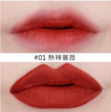 #01熱辣薔薇 屬於稍微偏深一點點的紅色 個人推薦這款唇彩的兩樣擦法: