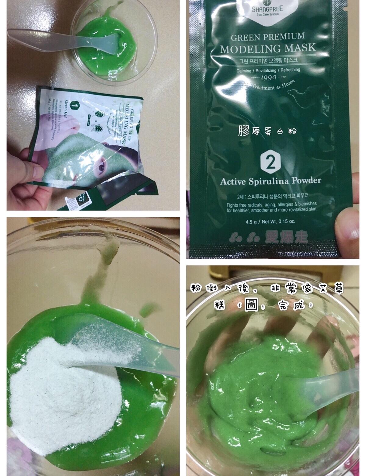 一開始盒子裡附了凝膠一包、膠原蛋白粉一包、塑膠碗、攪拌棒,然後把兩包(凝膠、膠原蛋白粉)兩個倒入塑膠碗裡攪拌均勻(30秒內快速攪拌‘標籤上寫的’),當裡面面膜攪拌均勻後就可以敷上去靜態等30分鐘乾後撕掉。