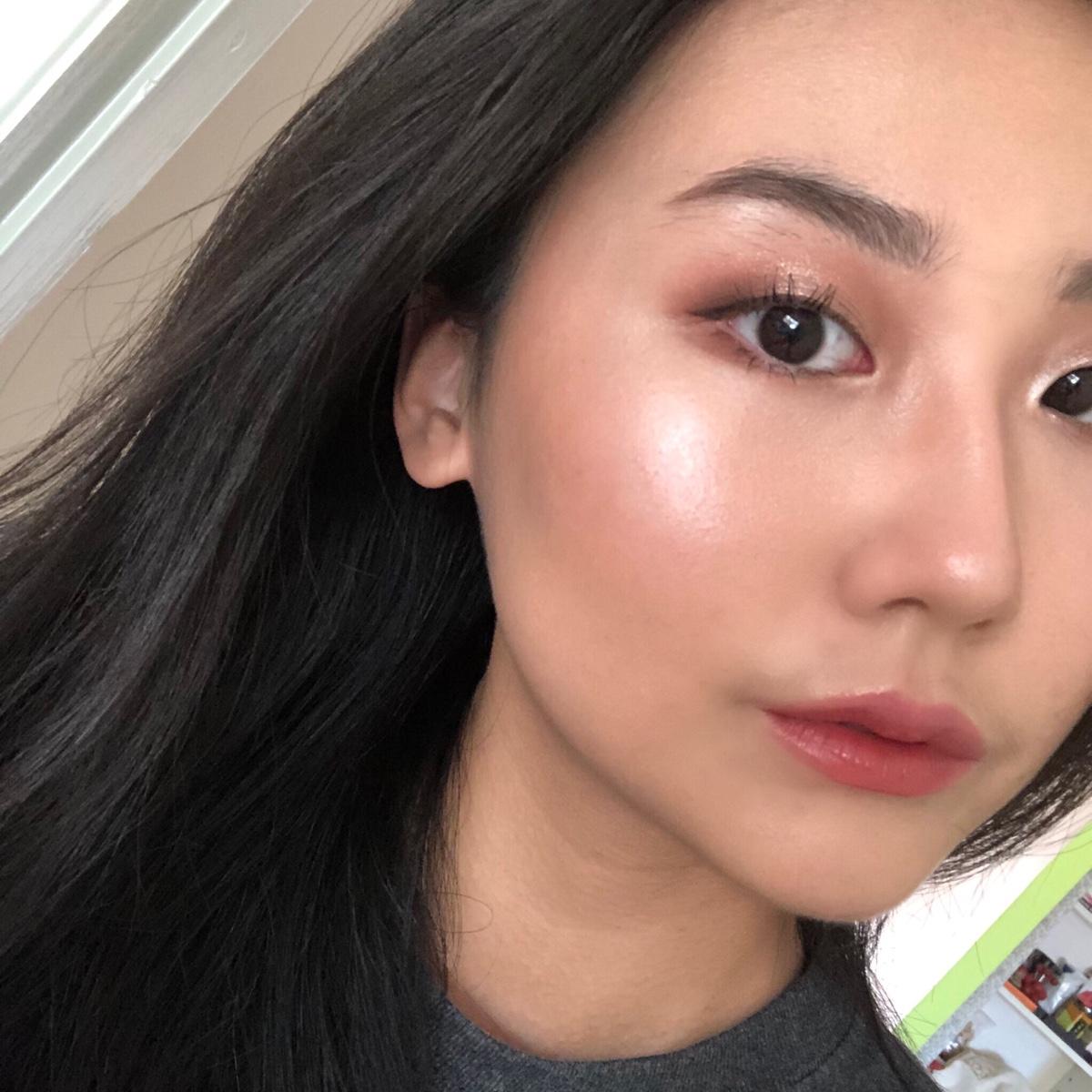 ✨粉質細膩、毫無亮片感!但我覺得它可能比較適合「膚色偏白」的人哦!因為是偏粉的香檳白,在健康膚色上可能會容易有粉感,沾太多直接上的話,會有一條白色在臉上的感覺😨建議用手指上,或是少量上才不會粉感重、顯毛孔~