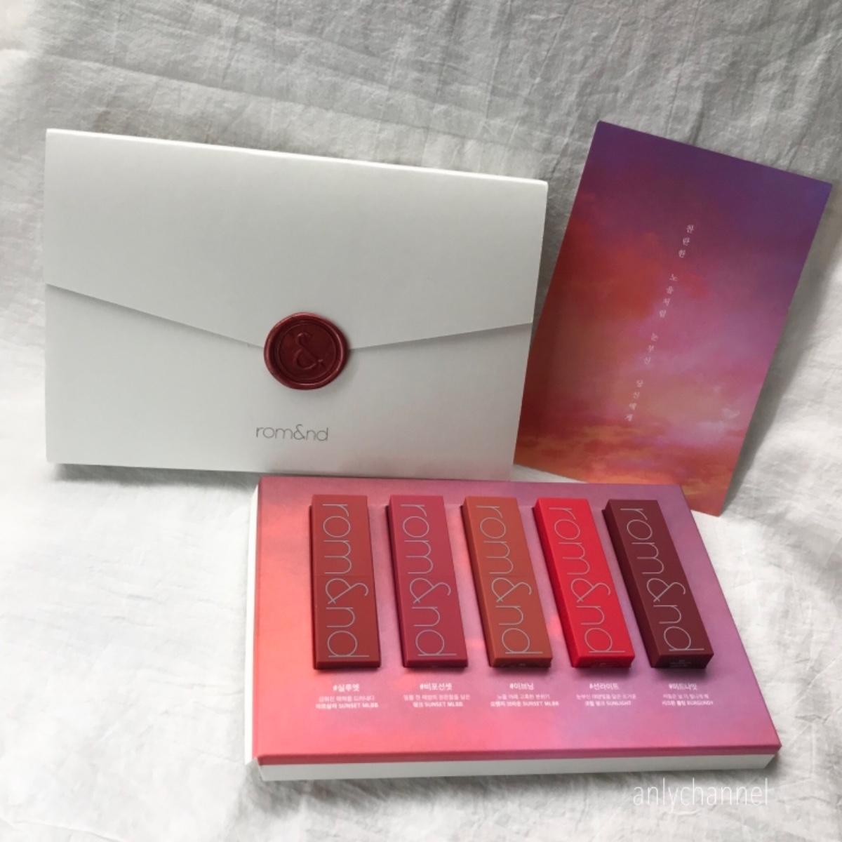最近很夯的romand,我先買了這個組合,因為買組合價格來講非常划算,而且裡面唇膏克數都沒有縮小!!! 看韓妞試色燒了一整片森林的大火,終於買了😚 外盒超級漂亮,信封造型還有我超愛的封蠟造型😻😻😻 剛剛刷了色,真的不會乾,是絲絨霧面的質地,隨手用了一支在嘴上,目前都沒起死皮~ 裡面的色號是: #9 silhouette #실루엣 #10 before sunset #비포선셋 #11 evening #이브닝 #12 sunlight #선라이트 #13 midnight #미드나잇