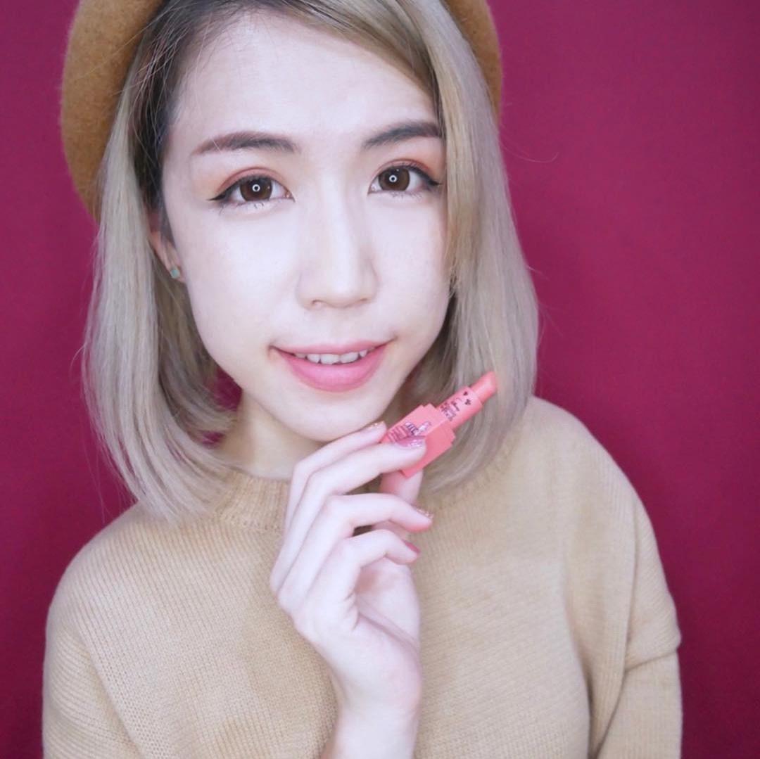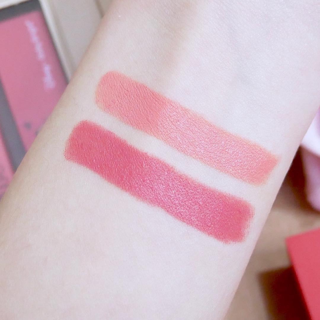 雖然膏體看起來偏橘,但因為顏色比較淺,所以在唇上會有點透出嘴唇的顏色,最後呈現偏粉紅一點點的顏色,這色建議擦完用手指抹開,可以擦得比較均勻