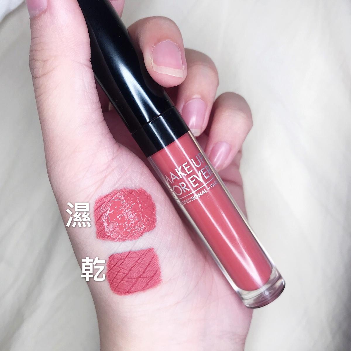 我買的色號是「301」,這色櫃姐大推他說剛出的時候是熱賣色,這是我目前用到最好用的不掉色唇釉,以往買的不掉色都很乾有死皮,這隻擦之前上一點護唇膏,一開始會是濕的過一下會變霧面(圖三),真的不太掉色又不會太乾!