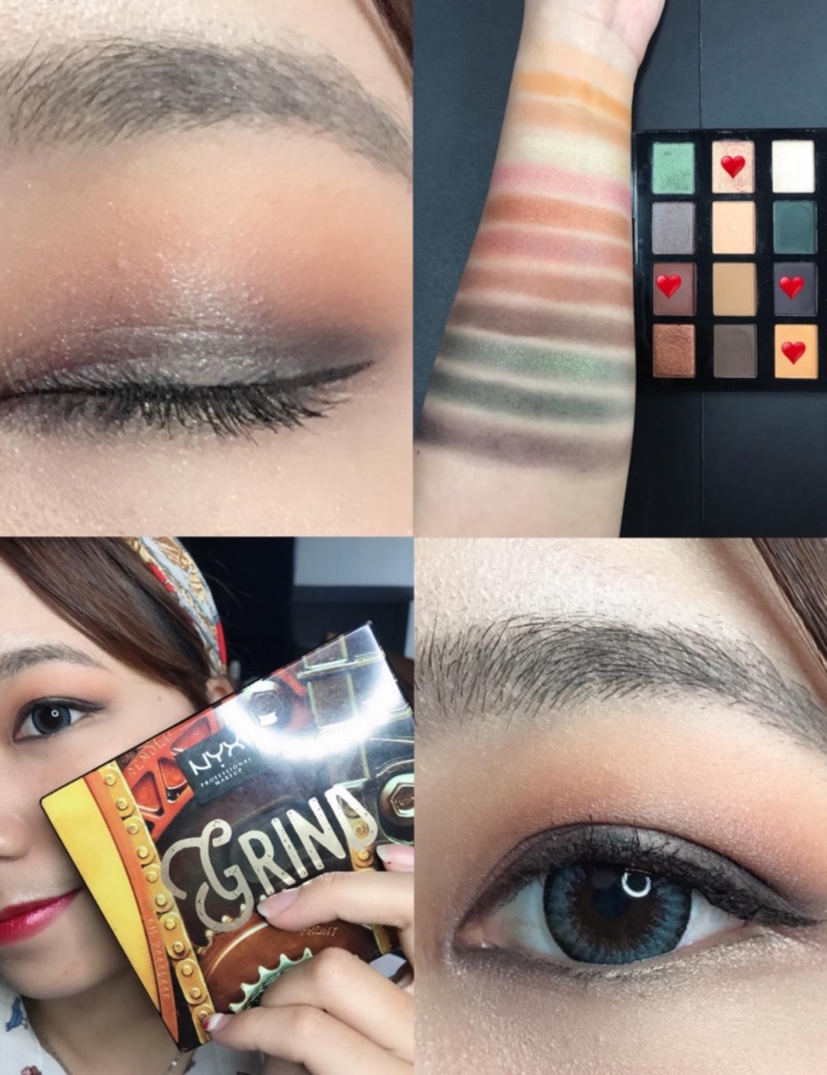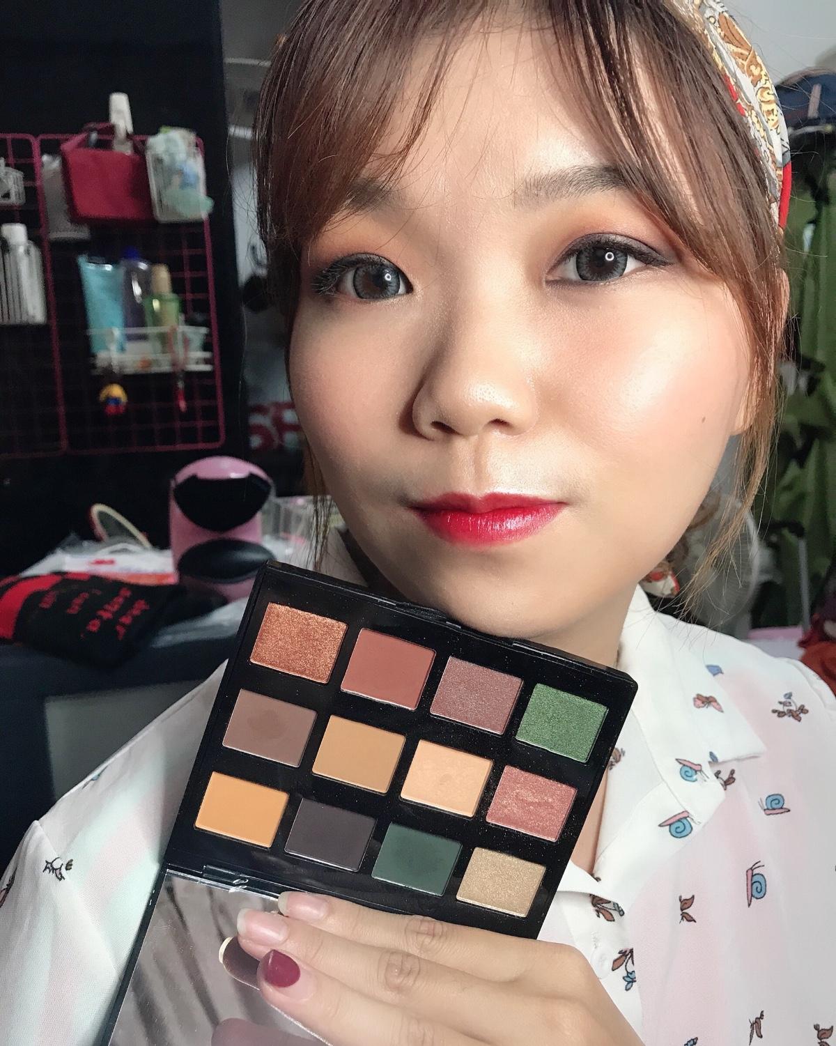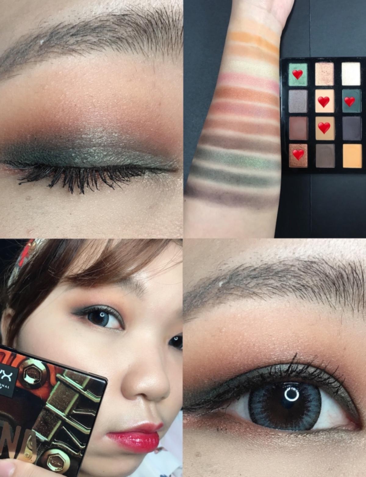 整盤色調比較偏黃調,再配上深藍墨綠的的顏色,這幾個深色,用來上在眼尾可以讓眼睛更深邃!