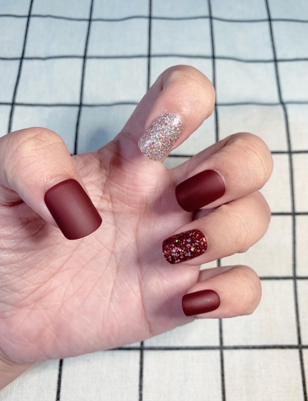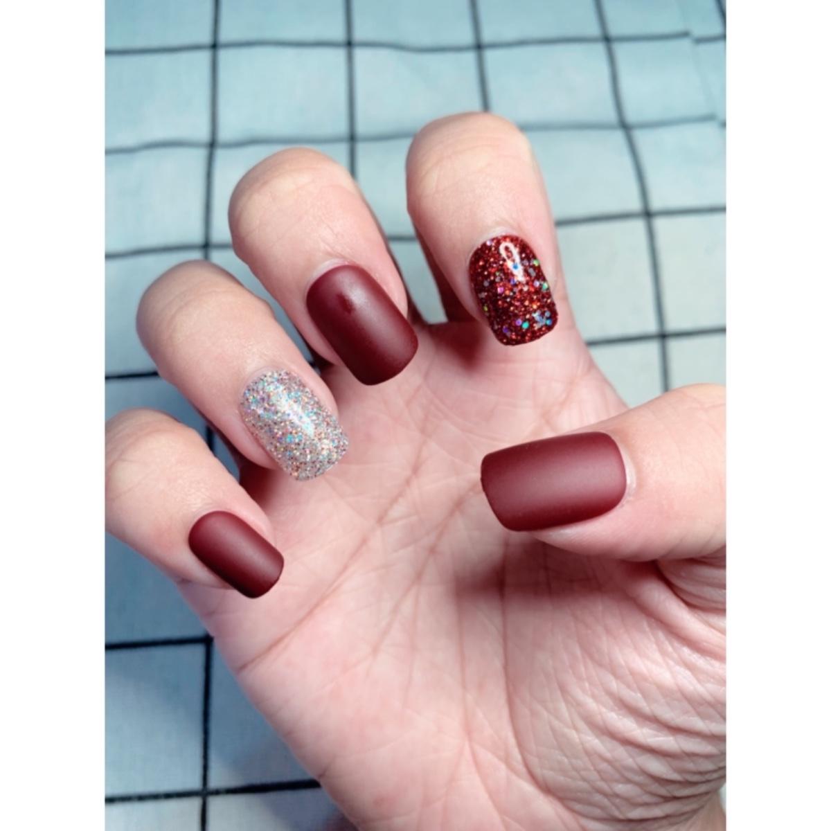 原本我擦了透明的指甲油,想讓它看起來亮亮的,結果發現它會變成一層膜很容易被摳下來,所以如果不喜歡霧面的人可能挑選甲片時要注意一下唷