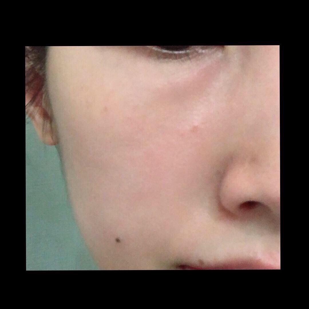 圖二是做完上述動作後的近拍,可以看到我的臉有點泛紅,顴骨附近有點小斑,還有黑眼圈😵