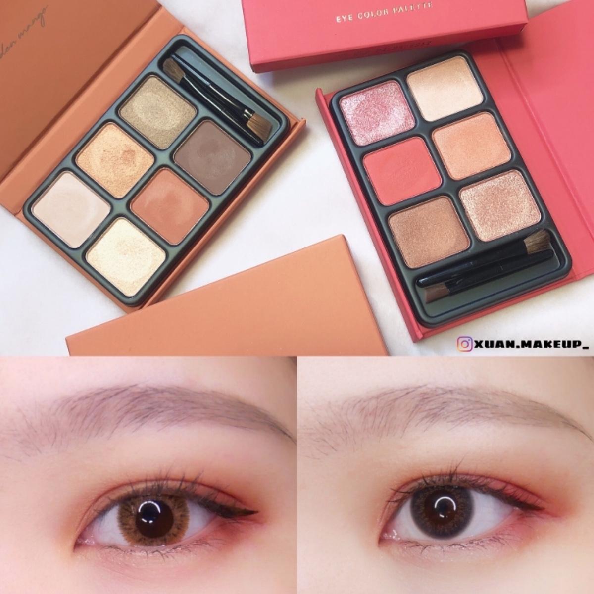 假如只需要簡單的妝或是特愛大地色系可以買金芒盤,如果喜歡做一點特別的改變可以買粉桃盤,雖然粉桃也可以化出大地色系的眼妝,但粉桃盤比較桃紅大地色眼妝的感覺!
