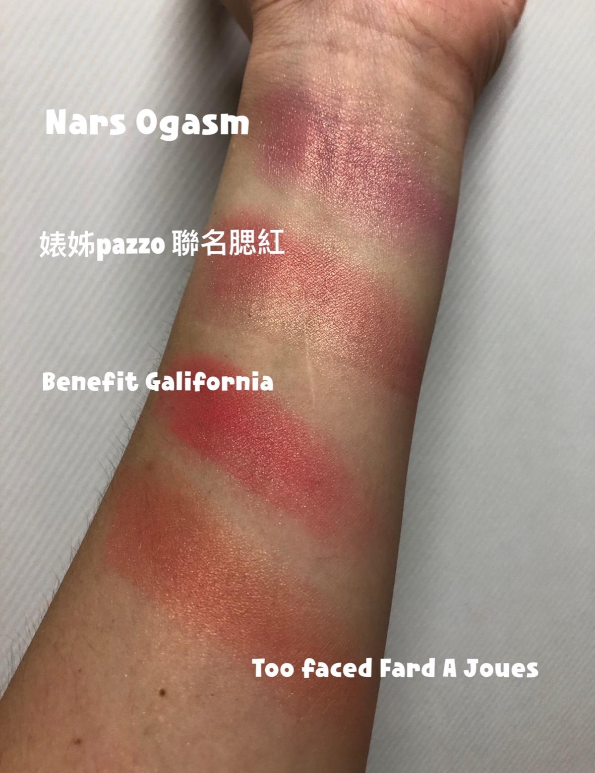 立馬拿出手上所有鮭魚系的腮紅來排排試色,果然是異卵雙胞胎!因為婊姊的更偏橘一些,大家如果對orgasm的dupe有興趣入手可以考慮這款