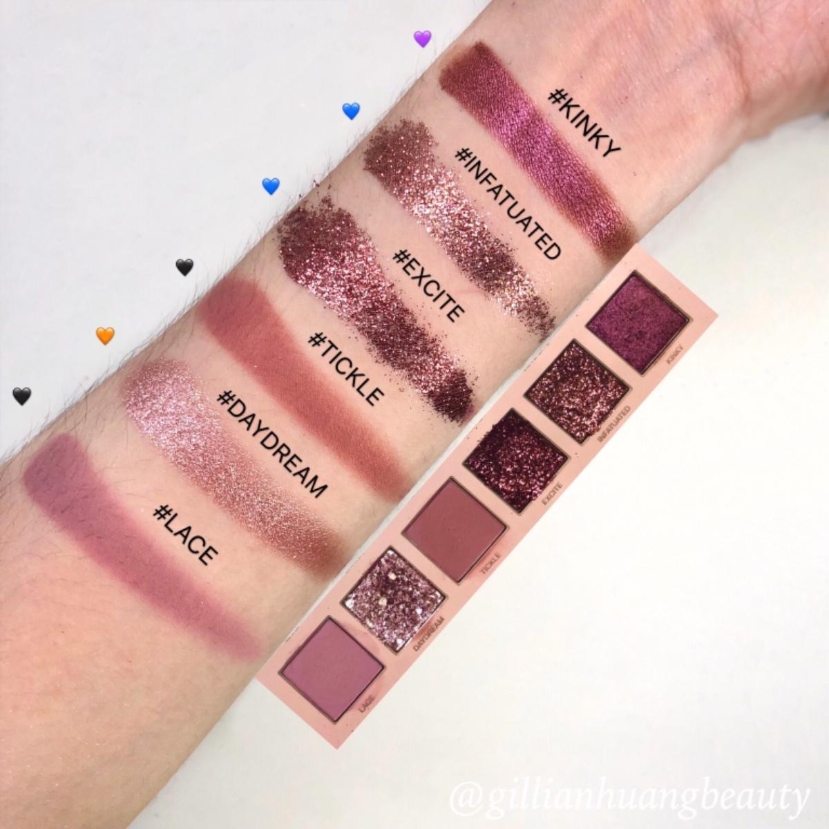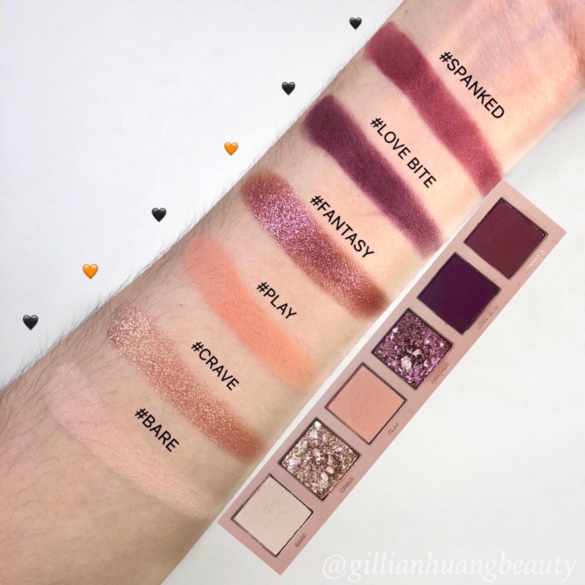 Huda beauty家的粉質一直都是持續在進步的,這次新出的new nude也不例外,多了一個創新的質地—貝殼云母色。所以這盤眼影盤共有5種質地,依照愛心的顏色講它們分類: