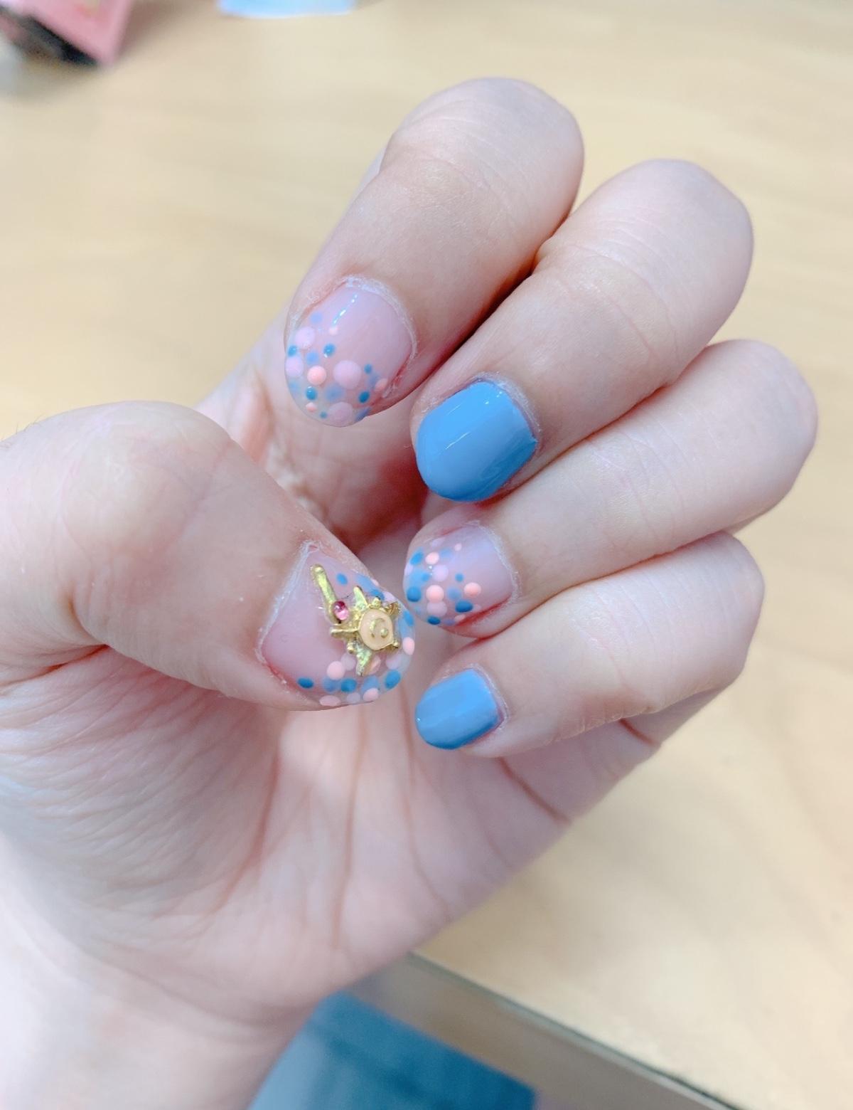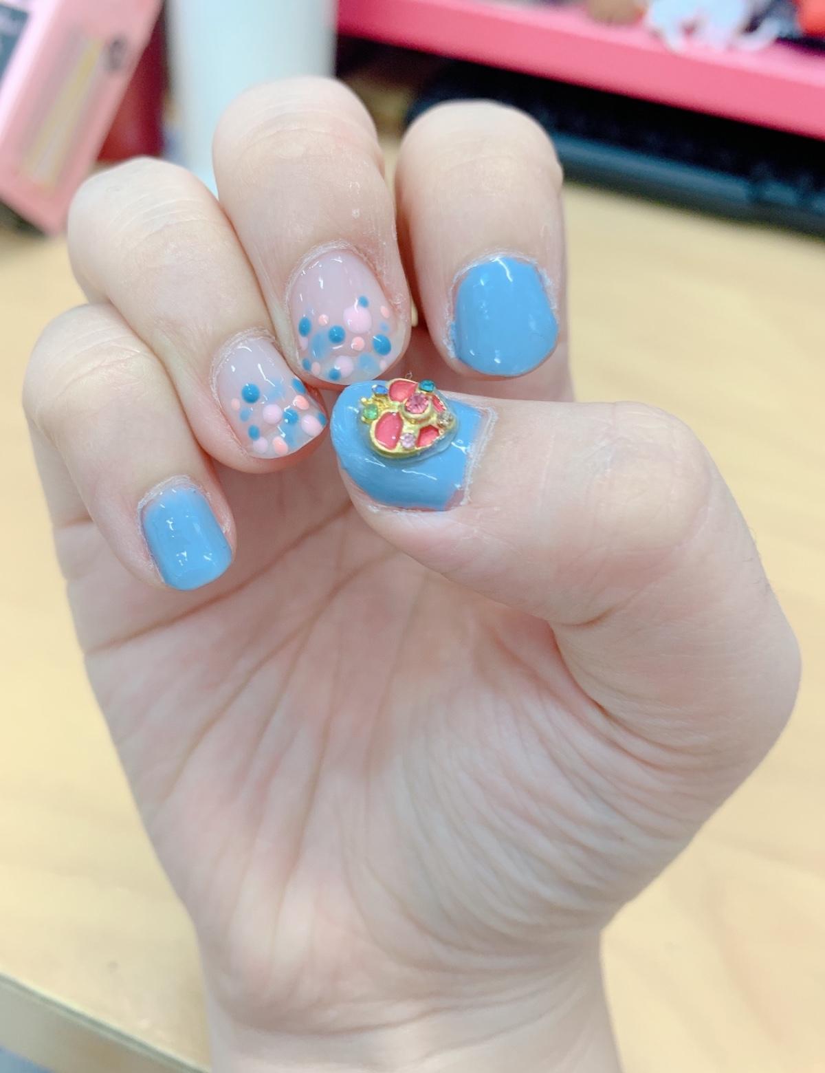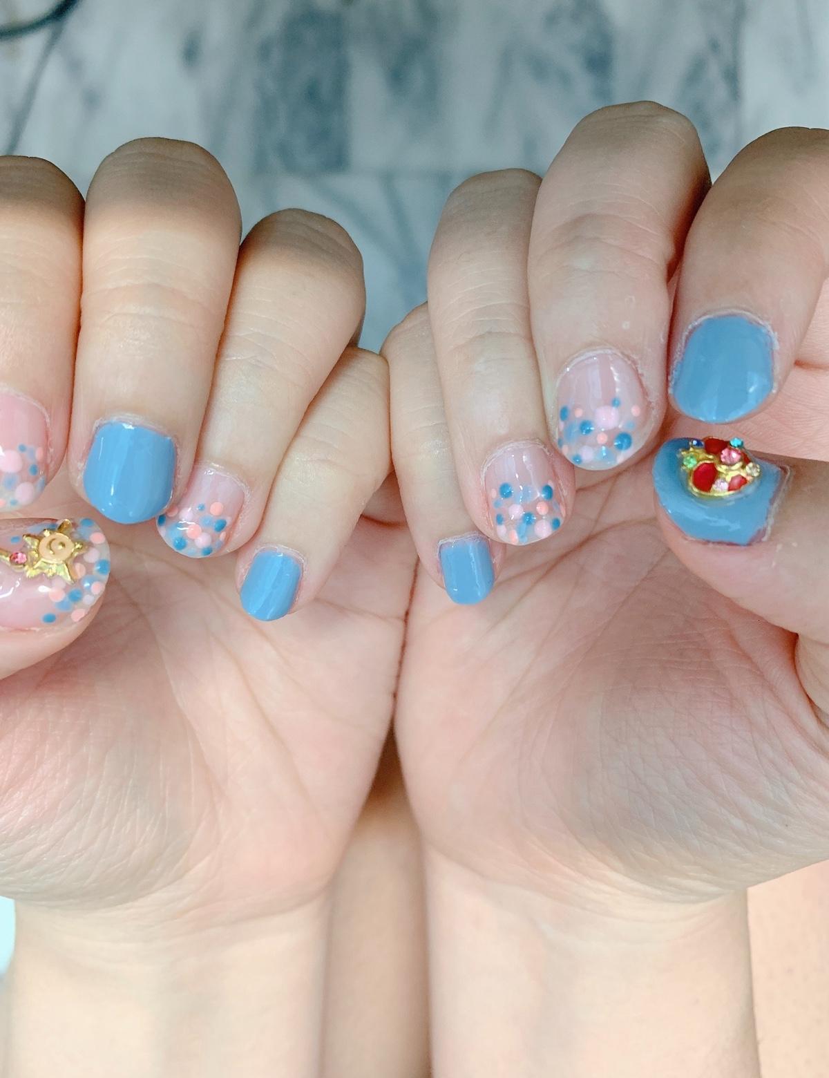 夏天到了,天氣開始炎熱起來,來點沁涼的指彩吧!搭配水藍色mix粉紅色的點點,意外的搭,再加上童年的回憶,少女心爆發! #水藍泡泡指彩 #美少女戰士 #水藍mix粉紅點點