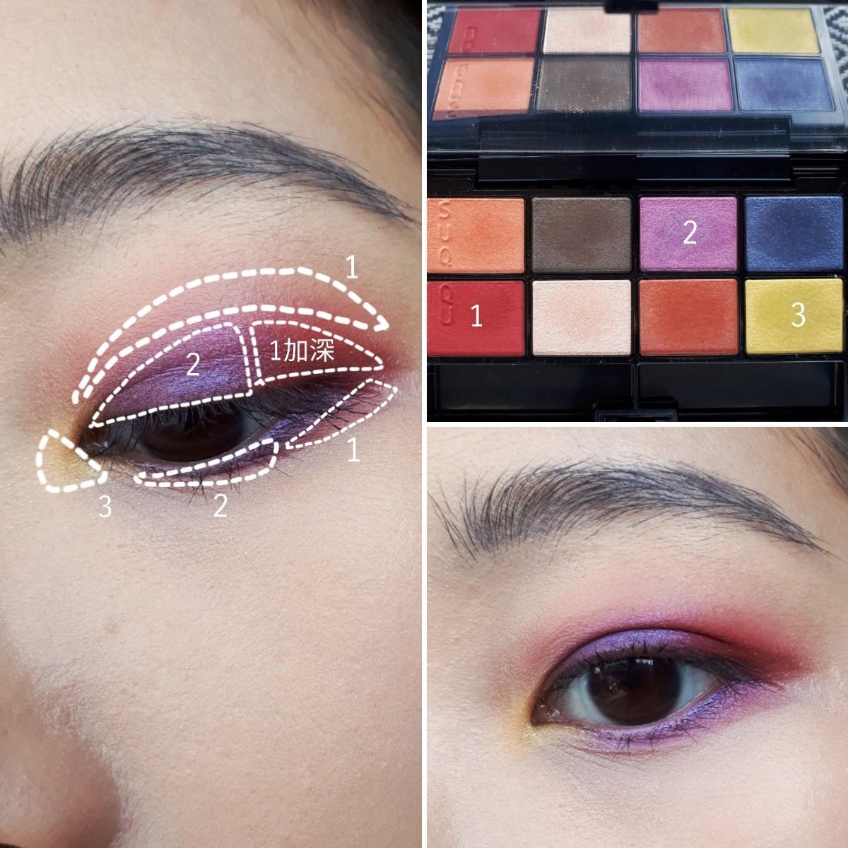 用上次入手的Suqqu英國限定眼影盤畫了三個不同的眼妝
