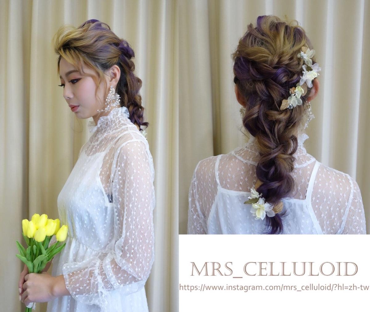 前天的模特兒, 覺得她褪色的奶茶髮色、深紫色的挑染搭配編髮,挺好看的!那天使用maqpro 的唇頰彩來做腮紅,非常服貼自然❤️ 不過下手一定要輕,因為它真的很顯色! 一點點就有好氣色😊