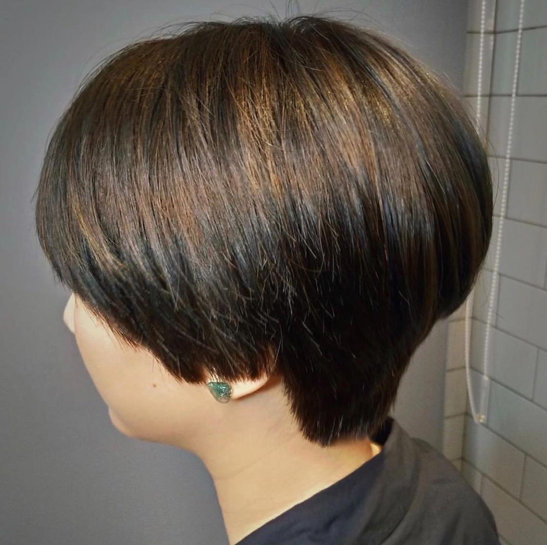 細膩的層次編排堆疊出豐厚髮量與美麗圓弧,搭配冷萃咖啡髮色挑染棕金色展現頭髮的線條,敢於嘗試短髮的你也來試試這個清爽的髮型