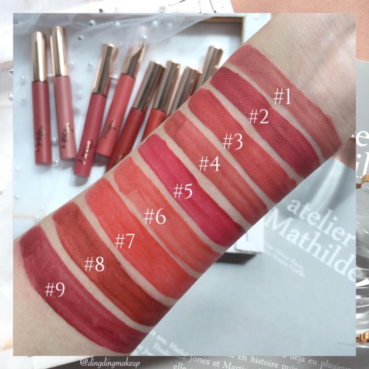 唇釉質地是全霧面的,一開始剛擦上去是水潤的,之後會轉成霧面,全霧面的唇釉最在意的就是會不會乾,這款我覺得完全不乾欸~質地輕薄又滑順,持久度高,不會太沾杯,而且不染唇。