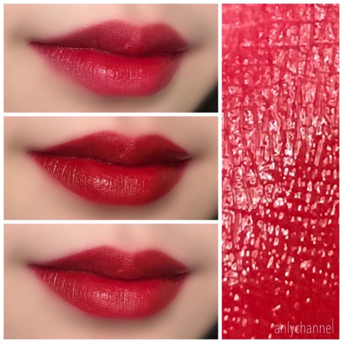 🌸膏體看起來滿暗紅的但其實不會,它擦起來是很大器的感覺,讓你變李多熙⋯⋯的朋友((o(*゚▽゚*)o))薄擦偏桃紅,厚擦的紅唇不會太沉重,厚擦後用衛生紙壓掉一層也很有質感