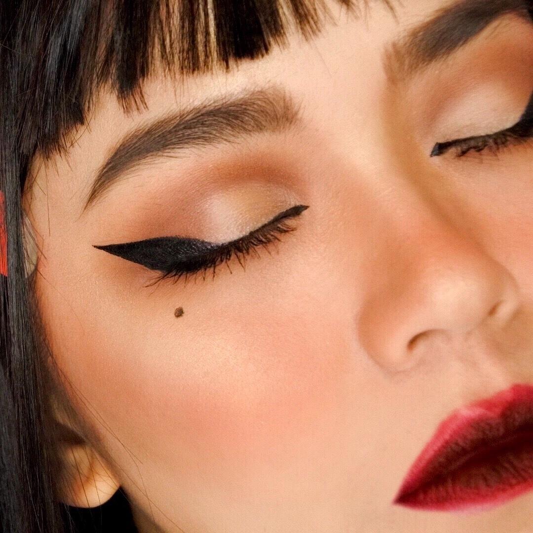 算是歐美妝入門吧,手邊只要有三個色階的霧面大地色眼影加上遮瑕膏來Cut Crease就能完成,這種很基本公式的眼妝,拿修容盤來畫也是可以的,日常都可用,換成其它色系也都完全OK唷!