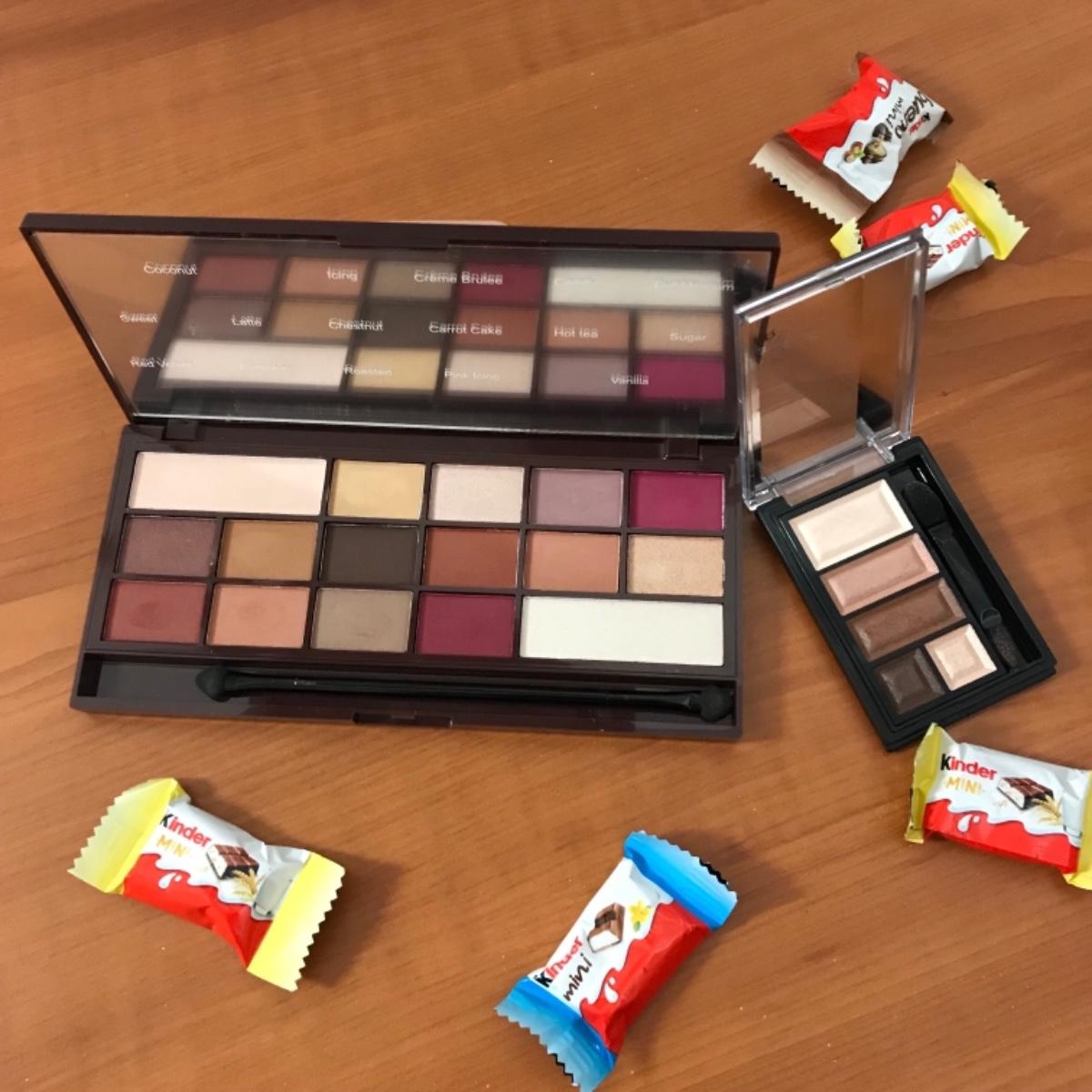 手邊的巧克力眼影盤分享🍫 1 / 2#makeuprevolution#rimmellondon兩款皆帶有巧克力的甜香味對螞蟻人而言上妝就是種療癒粉質以開架來說算中上顏色度rimmel略遜一籌兩盤配色都很日常超級推薦🔥 傘咪