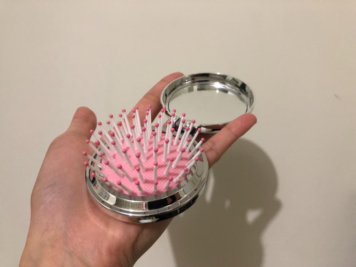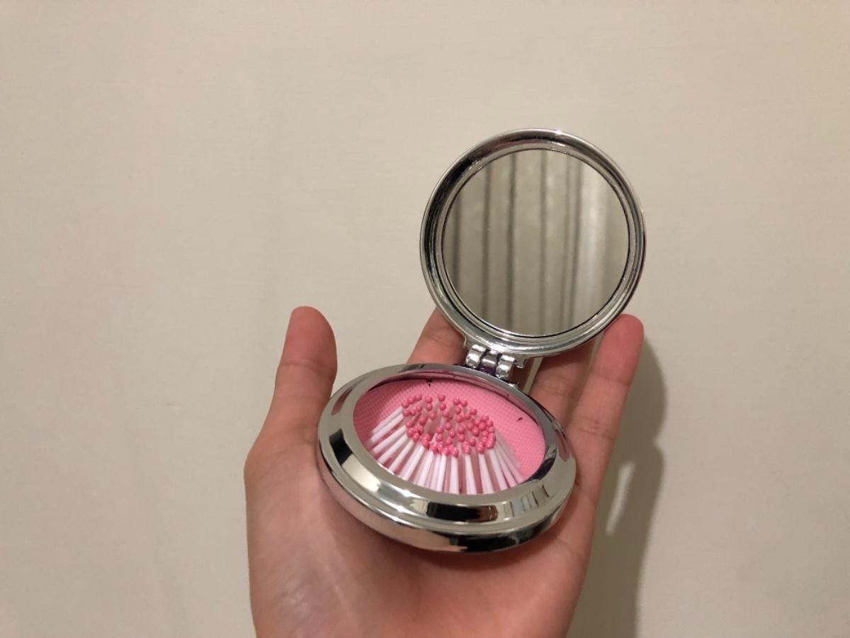 昨天去miniso買交換禮物 意外發現的一個可愛小物✨ 隨身鏡!收起來的時候就跟粉餅沒啥兩樣很可愛哈哈哈哈哈就無意識地買了 才59$