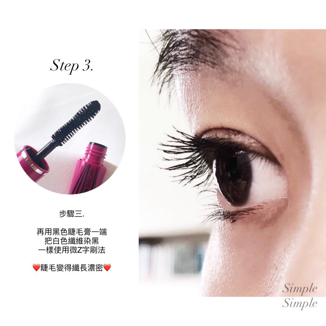 3. 最後再次微Z字刷過「黑色睫毛膏」將纖維染黑。(口訣:黑-白-黑)