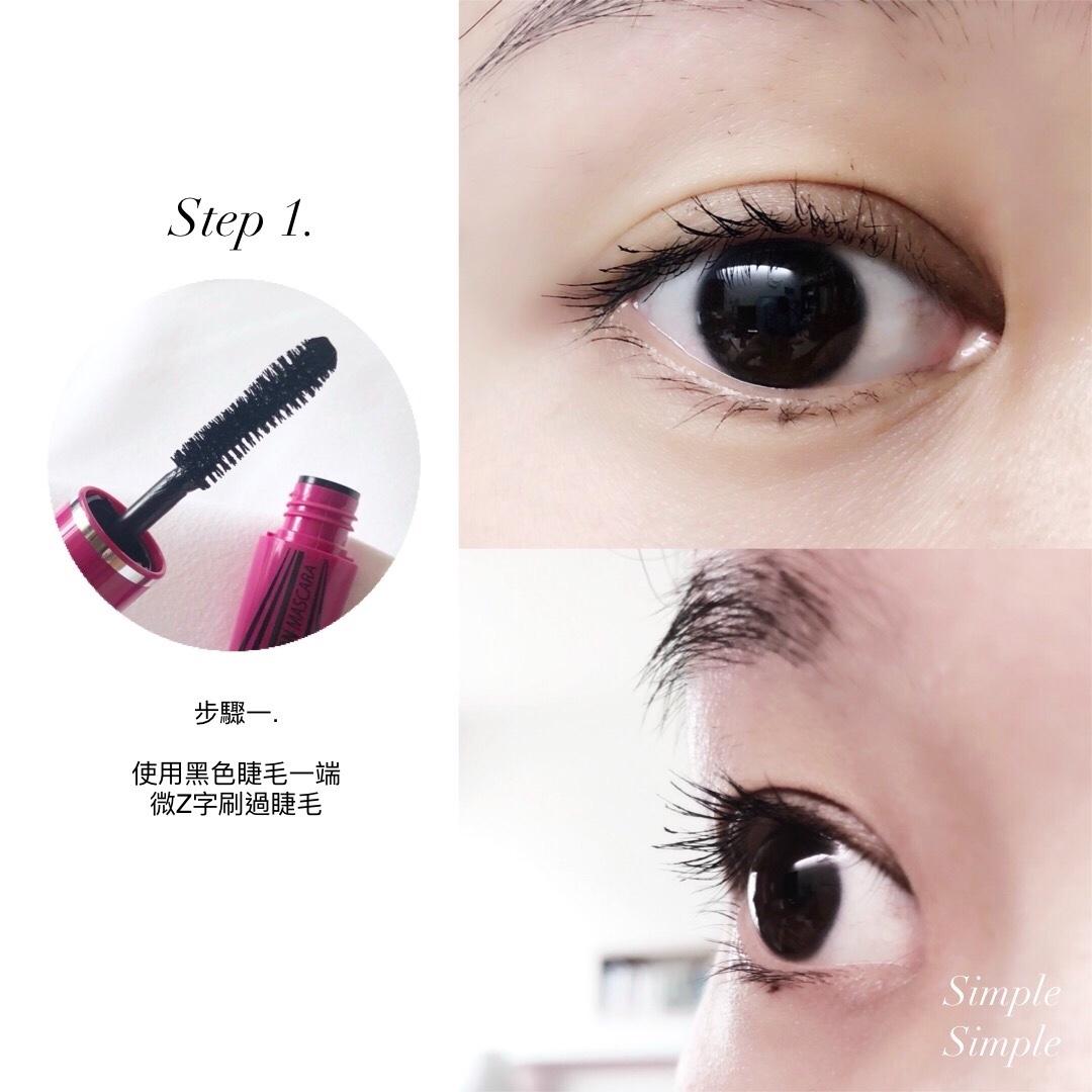 1. 微Z字輕刷一層「黑色睫毛膏」