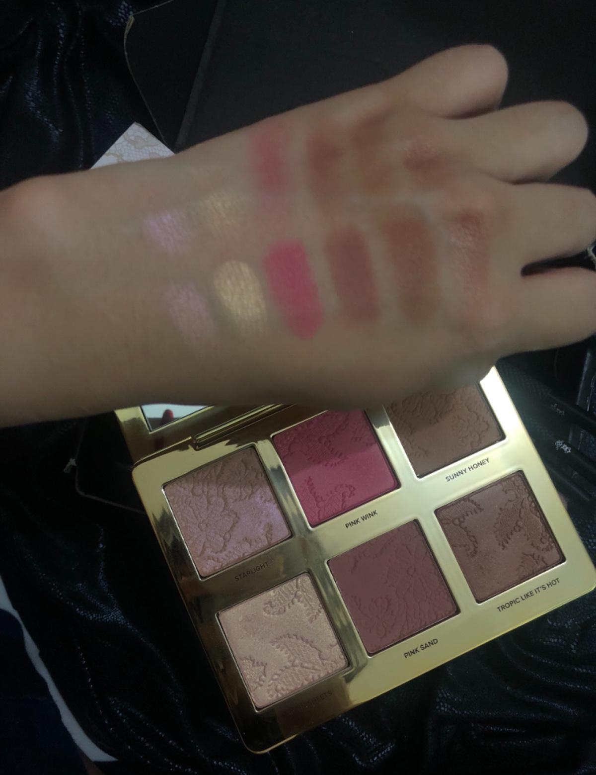跟其他Too faced產品一樣,這盤都有香味,一用上臉時是聞不到,但一打開氣味都挺重,個人是不太喜歡。整盤有bronzing,brush,highlight各兩色,六粒的粉質都挺幼細,出色度都滿高。選色方面顏色都很容易配搭,除了臉部彩妝,還可以做簡單的眼妝,化出自然沙灘度假的效果(試上眼後一直有這種感覺)🏖