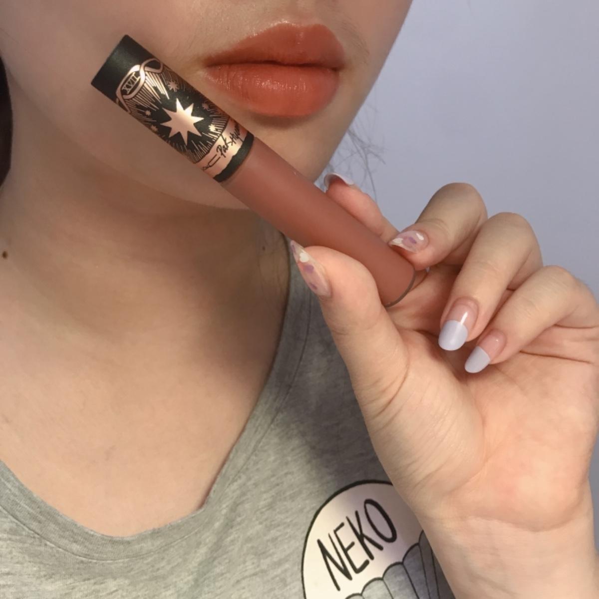 🤔奶油質地的霧面唇釉 但是它上唇後有點顯唇紋 會沾杯 不染唇 喝完水後大概剩70%