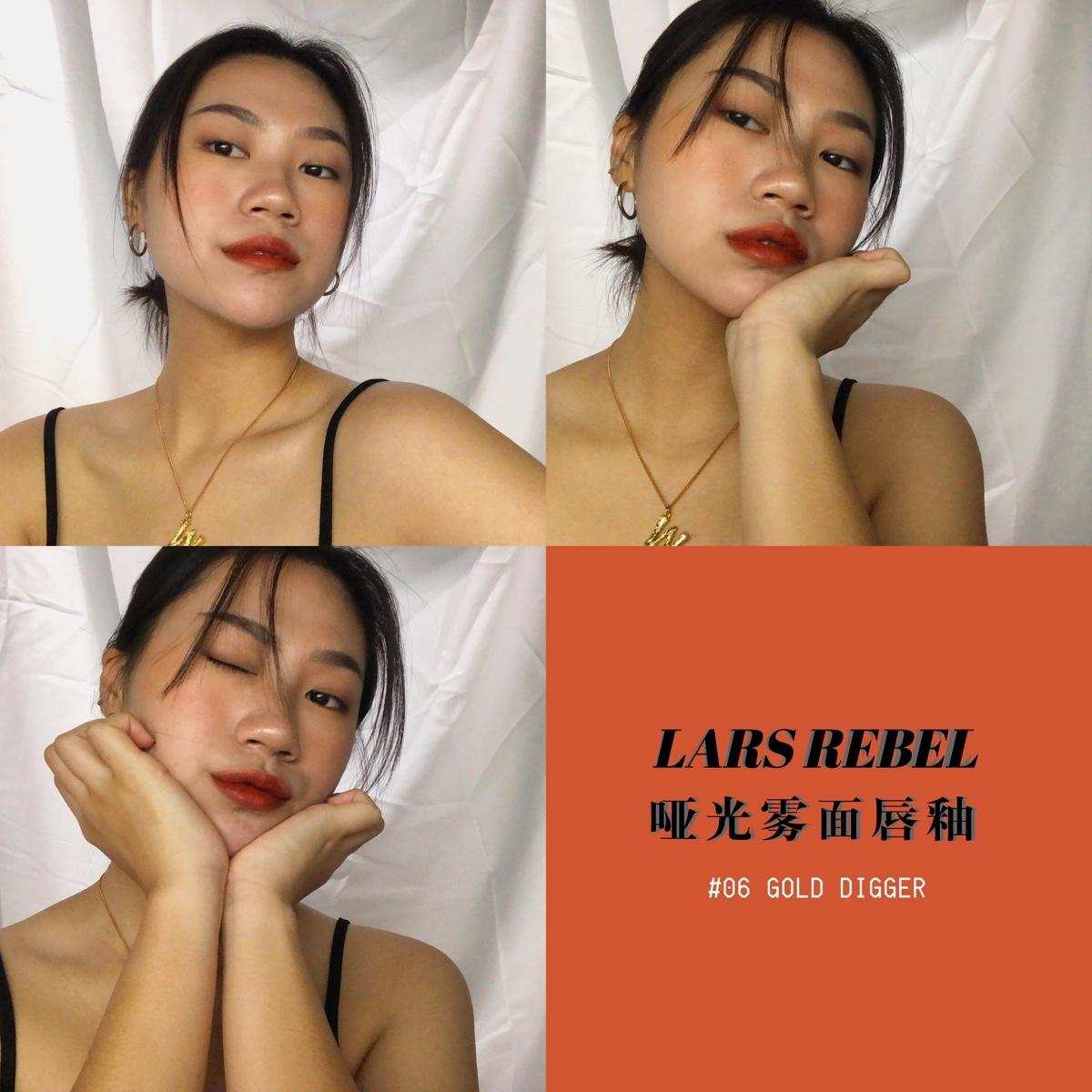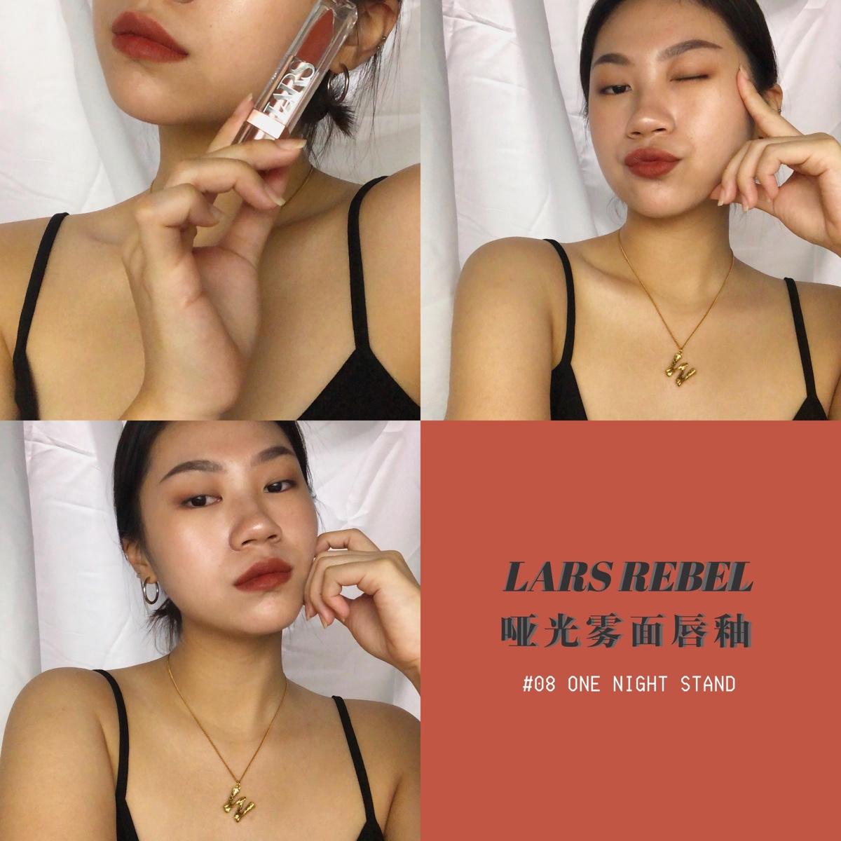 LARS 今年9月份新推出了LARS Rebel系列啞光霧面唇釉~ 這個品牌真的驚艷到我一開始還蠻懷疑的 因為是微商品牌 可是價格卻比開價高 但用了之後真心完全很值得!外包裝是玫瑰金色的看起來很高端 塗上去的妝感是啞光霧面的 看起來不會是死死的霧面妝感~ 一般霧面質地的唇釉都會乾 可是LARS這款真的真的不乾 據說這是因為這系列的唇釉添加了玫瑰油和椰子油所以這麼保濕~ 而我最最最滿意這個唇釉的地方是它的顯色度和搽上唇後的飽和度 一般色澤飽滿顯色度高的唇釉都很難塗的乾淨利落 可是LARS這款完全沒這個問題 我之所以這麼推薦它就是這個原因!這一個月我用下來我意外發現我已經悄悄地都把以前買的唇膏給冷藏起來了 😂 下面跟你們說說我用了每個色號的心得與小小的介紹