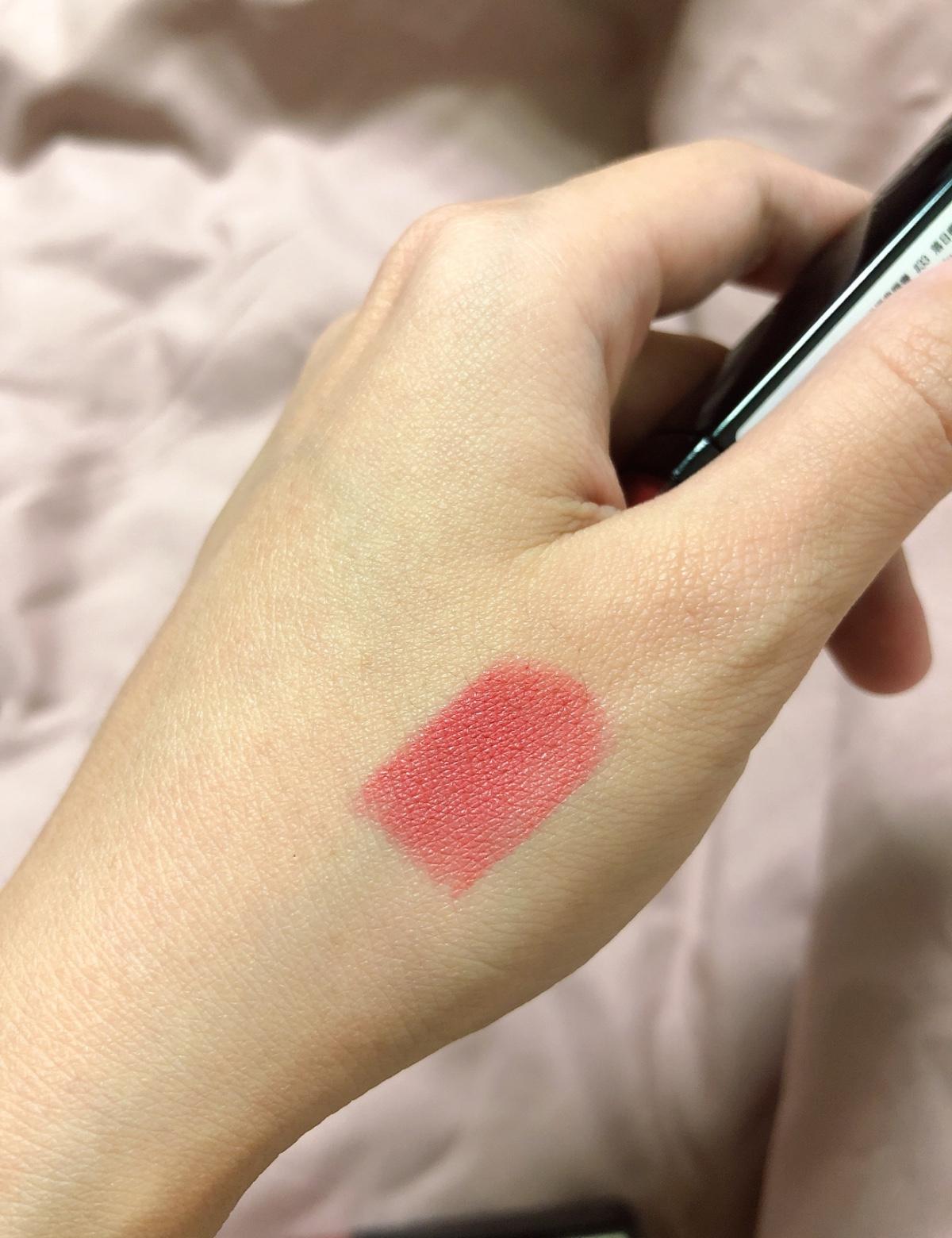 妙巴黎試色分享 落日楓紅#33 1 / 4繼上篇開箱!顏色覺得有點不是我想像的...落日楓紅感覺塗在唇上變成有點珊瑚粉Q——Q但喜歡這顏色的可以買現在美麗佳人雜誌送兩隻喔! Syuuuuu美妝情報_唇彩控_女生日常分享_左營松山