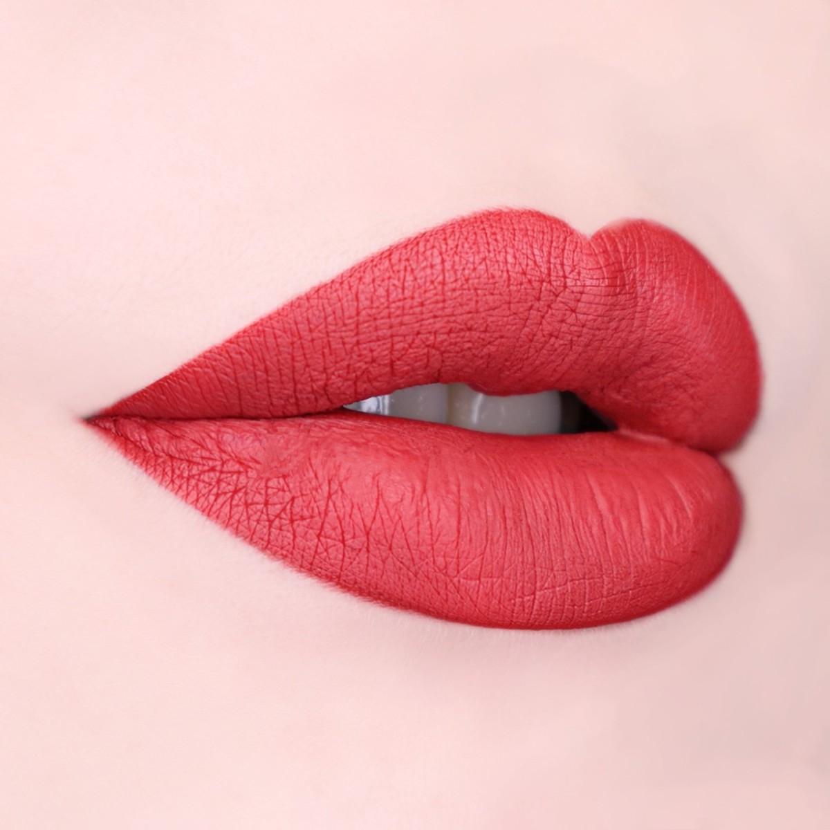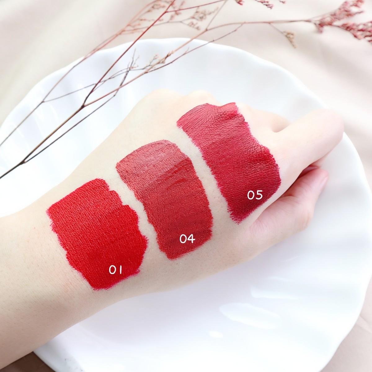 質地偏水感滑順,色澤很濃郁飽和,一層就能遮蓋唇色。剛擦會從亮澤感轉化成霧感妝效,稍有轉印的狀況,但整體持色度很好。卸妝方面用眼唇卸妝液、卸妝油都可以輕鬆卸除乾淨。
