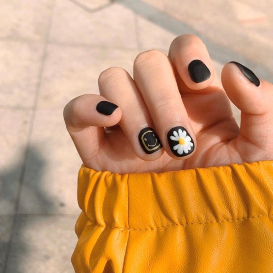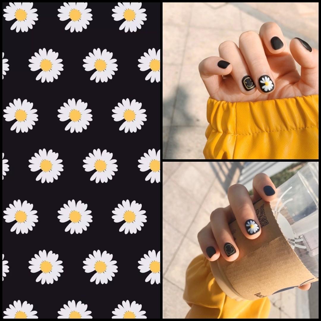小雛菊在指甲上也好好看! 底色搭配霧面黑超適合冬天~ 簡單俐落又不失帥氣個性, 更重要的是,還很可愛!❤️ #權志龍 #小雛菊 #聯名 #美甲