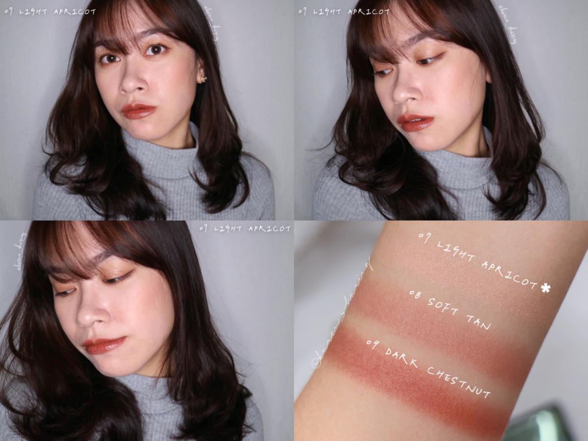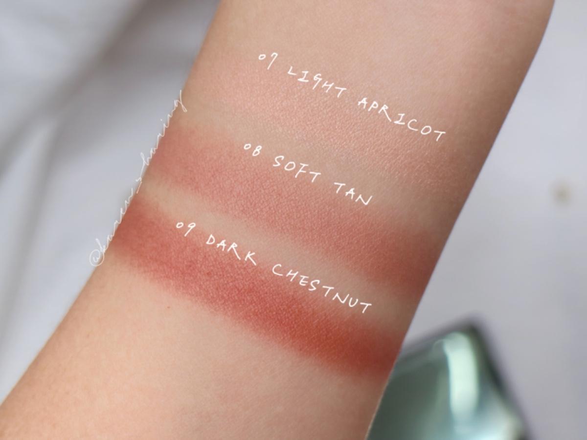 這兩個都是日常增添氣色,或是可以當作底色使用,皆以淺杏色為基底,01偏粉膚色,07偏珊瑚橘一點,可以以本身膚色色調來做挑選