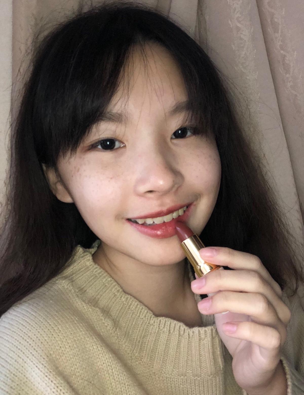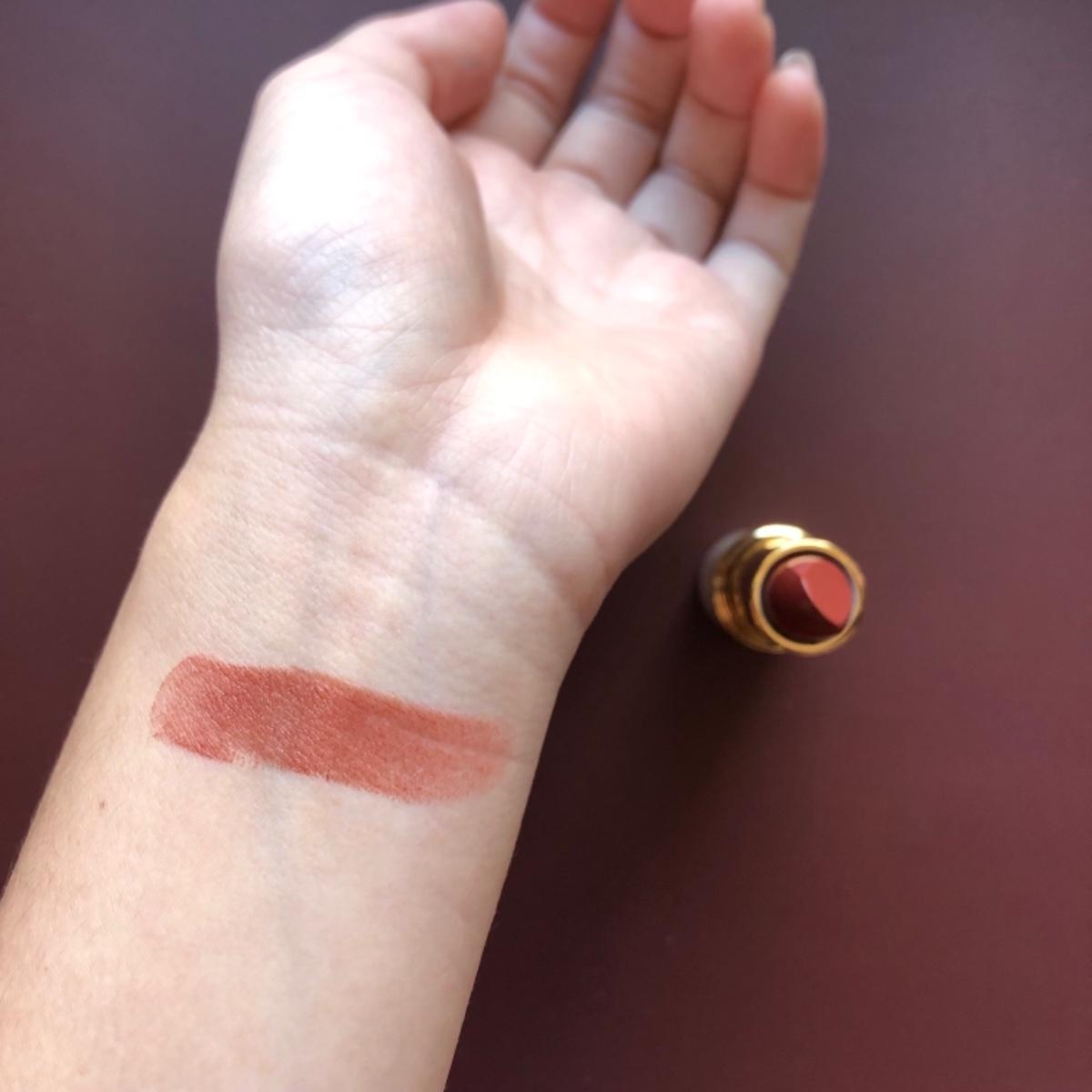 質地是很滑順的,顏色方面是偏咖啡色的楓葉紅,薄擦比較沒有楓葉的感覺,厚塗就有很美的顏色和光澤,可以說是今年不得不收的一支唇彩!重點是連素顏擦都不奇怪!