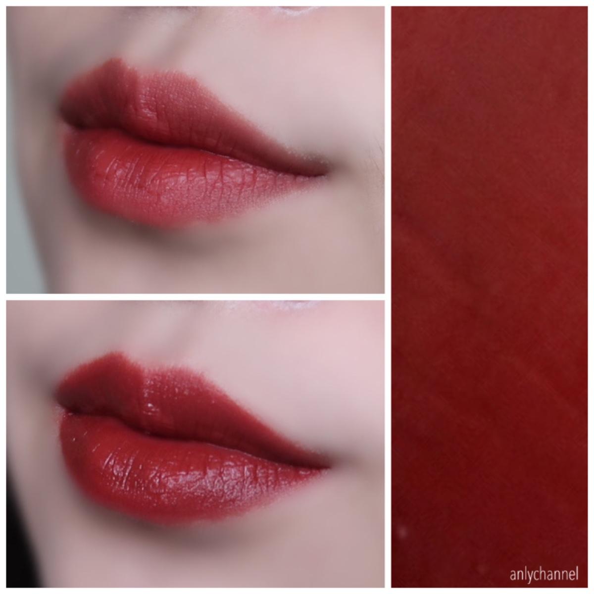 🌸質地是絲絨霧面的,很好暈染,適合畫花瓣唇的質地,屬於不會拔乾的類型,剛上去有光澤,後續會慢慢消下來,然後要把死皮去乾淨,不然光澤消下來顏色會卡在唇紋裡面,另外它偶爾會起一點死皮,有時候又不會,可能比較挑唇況