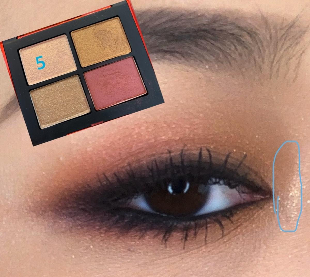 沾取編號5的顏色 在眼頭位子 輕輕拍上