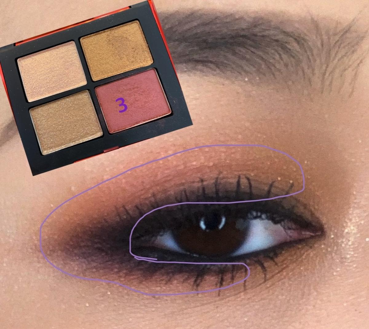 直接壓在上面 順著你的上下大ㄑ位子至眼窩往上暈開 )深色畫完了🎉🎉 4- 要好了!眼頭上下 小ㄑ位子 伸出你的小拇指 沾取編號4的顏色 塗乾淨
